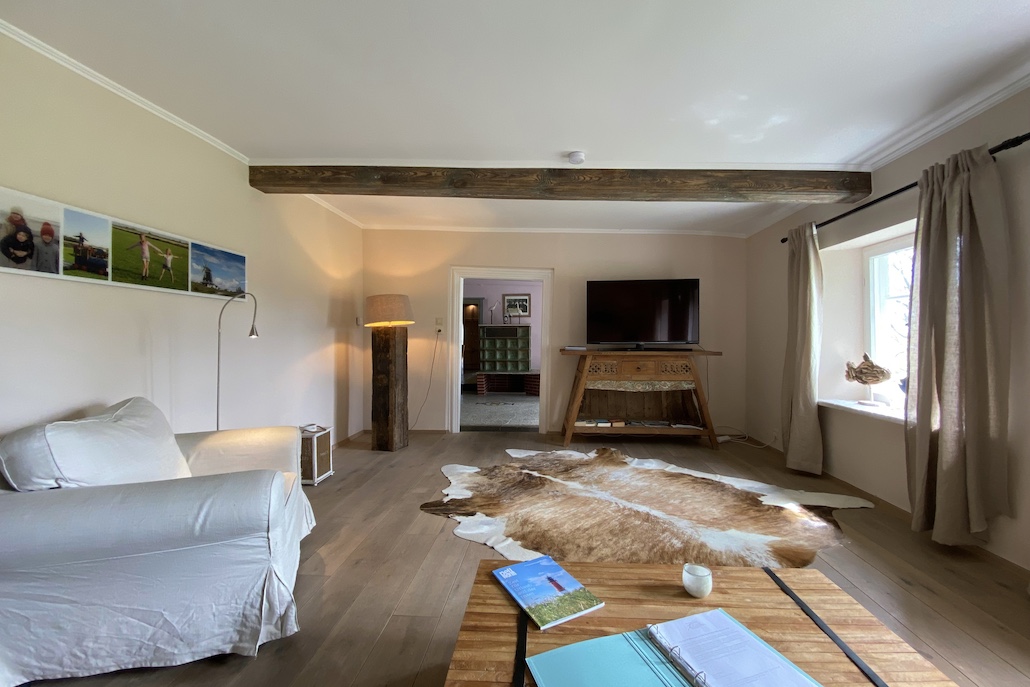 Die Ferienwohnung „Detlev von Liliencron“ ist eine 3-Zimmer Wohnung und bietet Platz für zwei Erwachsene. Sie liegt im Erdgeschoss und hat einen eigenen Eingang nach Süden.