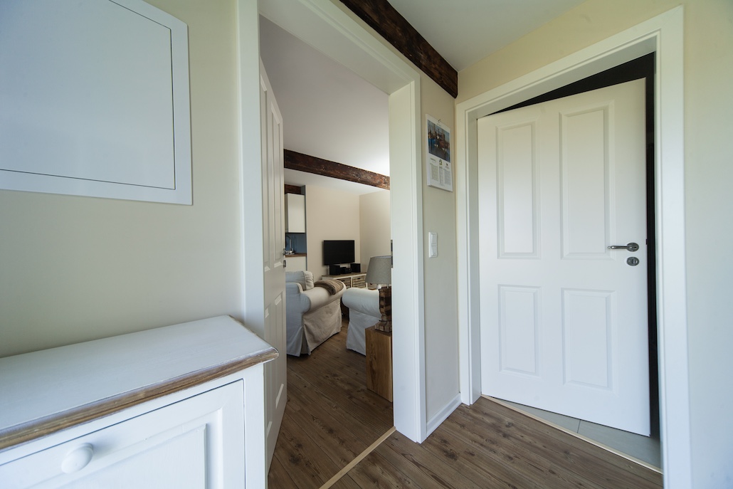 Das gesamte Apartment verfügt über eine Fußbodenheizung und ist mit Holzdielen ausgelegt