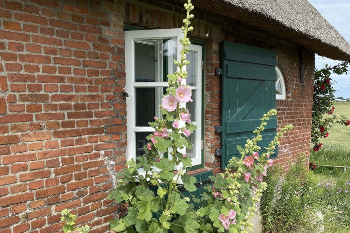 Diese FeWo verdient höchstes Lob. Sie liegt in einem alten Bauernhof, passt sich harmonisch in das alte, reetgedeckte Gehöft ein und stimmt mit der Umgebung, der Insel. Der Hof ist in einem sehr gepflegten Zustand und überall erfreuen Blumen, zu meiner Zeit Mohn, Margeriten, Rosen und viele andere mehr. Der Garten verrät viel Pflege und Sinn für Schönheit.